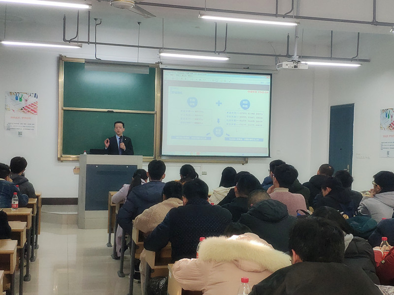 12月24日下午,交通学院举办“平安高管”进课堂活动,特邀平安产险南通中心支公司总经理高继荣,为应届毕业生进行职业培训讲座。学院党总支副书记张志刚、毕业生辅导员陈怡欣以及部分应届毕业生参加。