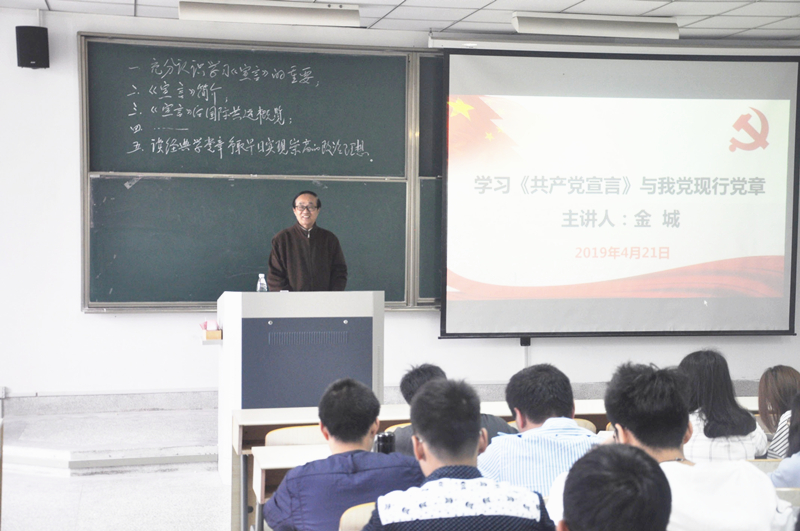 4月21日上午,校关心下一代工作委员会常务副主任金城为我院入党积极分子作题为“学习《共产党宣言》与我党现行党章”的专题讲座。