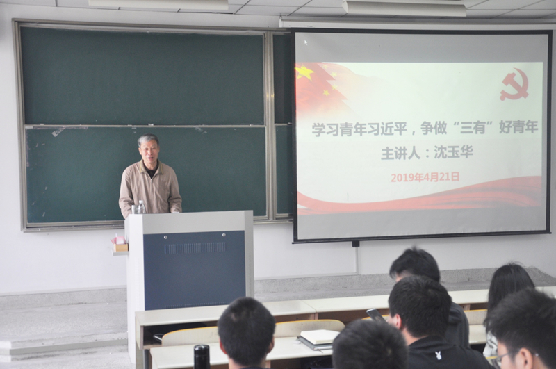 4月21日上午,我院分党校入党积极分子培训班特邀校关工委副秘书长沈玉华为首期入党积极分子培训班学员作“学习青年习近平,争做‘三有’好青年”专题讲座。