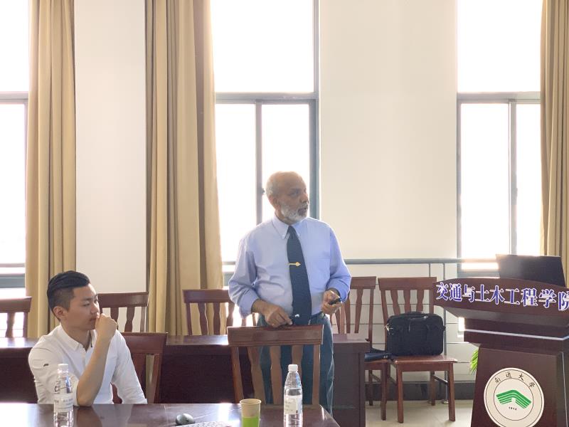 Siva教授介绍了加拿大麦克马斯特大学的办学模式、师生规模等情况。他的学术报告以《有构造问题的冷弯型钢托梁的加固策略》为题介绍了自己的研究成果。