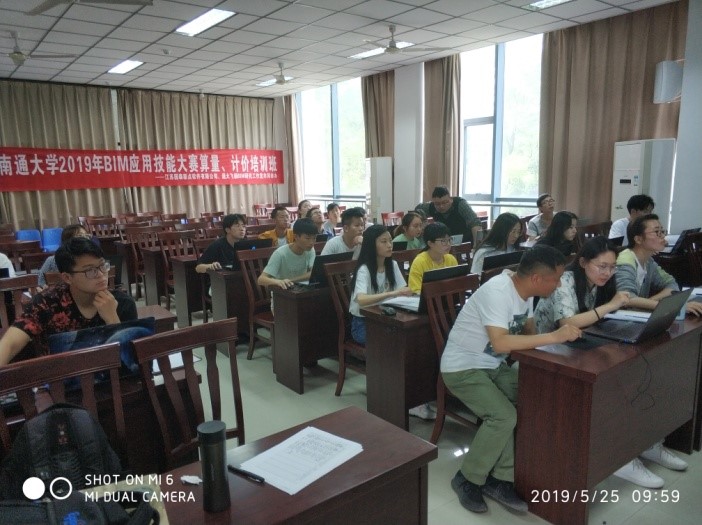 培训期间,江苏国泰新点软件公司和通大飞扬BIM研究工作室,为学生免费进行BIM建模和算量操作的培训,具体内容有BIM全专业模型的创建、算量、造价、施工模拟与动画的制作、施工现场和相关专业知识等等。