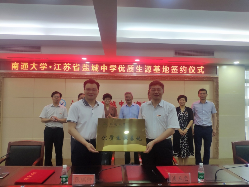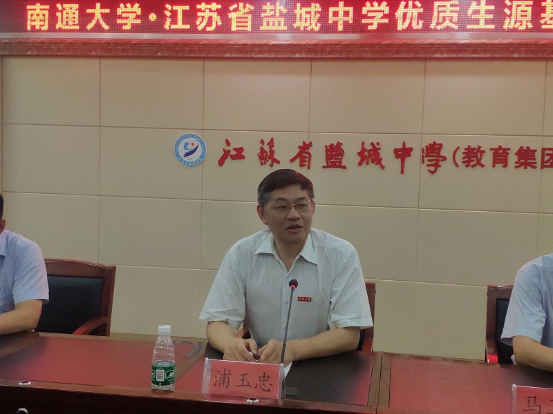 6月26日下午,我校党委书记浦玉忠一行来到江苏盐城中学,和副校长朱俊、盐城高级实验中学领导、高三年级全体班主任一起出席盐城地区优质生源基地签约和授牌仪式,并与盐城中学校长张瑞卿签订了优质生源基地协议并授牌,就进一步加强两校的互动交流、合作共建、联合发展搭建了良好的平台。