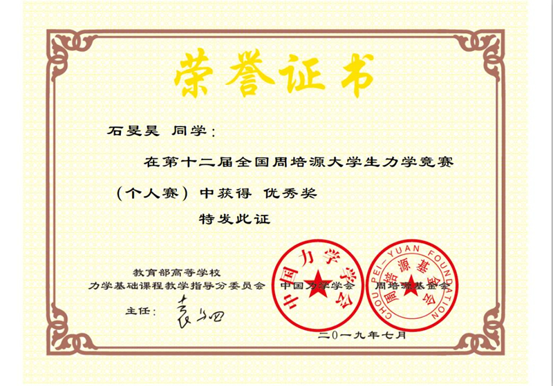 第十二届全国周培源大学生力学竞赛暨届江苏省大学生力学竞赛于2019年5月19日举行,我校派出了40位同学参加本科组的比赛,近日获奖名单公布,我校喜获佳绩。在国赛方面,个人赛共获4项国家奖。在省赛方面,获得团体二等奖,并在个人赛中共获6项省级奖项,其中一等奖1人、二等奖5人,获奖数量和质量均较上届大大增加。并有两位老师获得了省大学生力学竞赛优秀指导教师称号。本次竞赛成绩振奋人心、大大提升了我校师生的力学教学热情。