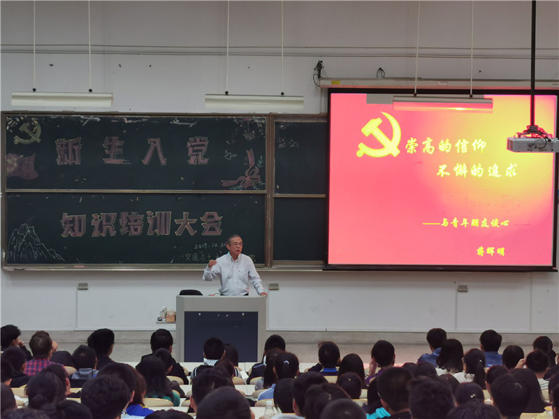 作为已入党54年的资深党员,蒋辉明讲述了中国共产党诞生的历史、先辈们的英雄事迹,表达了坚定信仰、肩负使命的深邃思想。他结合自身的求学经历与邓小平、邓稼先等爱国人士的生平经历,分别从使命感、爱国情、不懈追求三个方面重点阐述,强调了青年学子要时刻对党保持忠诚与拥护,强化了大家对党的信仰力量与不懈追求。他还围绕“努力践行党的宗旨,全心全意为人民服务”的话题,列举了周恩来、“莫文隋”等为人民奉献的典范,呼吁新生们要学做雷锋,彼此共勉。最后,蒋辉明向同学们介绍了入党申请流程,鼓励同学们要积极向党组织靠拢,早入成为中国共产党的一员,为实现中华民族伟大复兴的中国梦添砖加瓦。