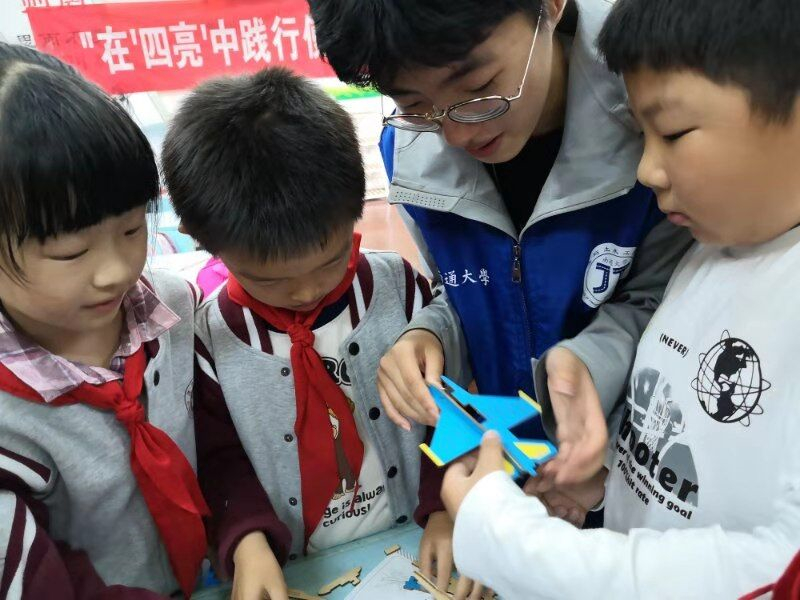 学生党员们以动画短片导入,组织小朋友们展开了关于“长大后想要当什么”的讨论。之后,以互动交流形式,激励小朋友今后在学好知识、提升本领的同时,也能力所能及地给需要得到帮助和关爱的人伸出援助之手,通过举手之劳传递爱心,分享知识和快乐。同时也鼓励小朋友要从小立志,树立远大理想并为之努力,在新时代的洪流中为实现中华民族的伟大复兴贡献力量、报效祖国。最后,学生党员们将53位小朋友分成若干个小组,共同完成了模型拼图,在游戏中潜移默化地培养了小朋友们的团队合作精神和动手操作能力。