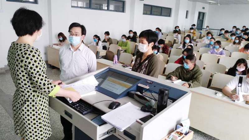 5月4日上午7:30,365英国上市公司在线领导班子下沉到一线,走进教学楼8号楼309教室进行首日线下巡课。