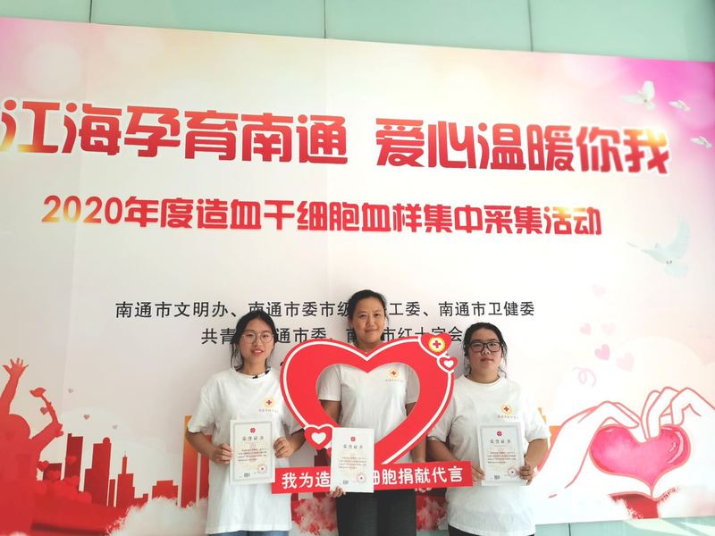 在造血干细胞数据采样现场,在工作人员的热情指引和陪伴下,符合捐献条件的陆霁老师和志愿者进行了抽样检测,抽取6-8毫升的血样进行备份,数据记录将进入中国造血干细胞捐献者资料库,等待配型,如能与需要的患者相匹配,将做好捐献前的准备并实施捐献。之后,南通市红十字会为她们的无私、大爱、奉献之举颁发了荣誉证书,记录下了这一难忘的瞬间。在谈到参加此次活动的感悟时,陆霁老师笑笑说,“小小的举动可能挽救一个人的生命,给予一个家庭幸福快乐的希望,我觉得这是我能够做的最伟大的事情。”