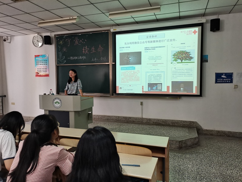 本次讲座专门邀请到南通市红十字会造血干细胞捐献工作者、中国人体器官捐献协调员余瑶。她向大家深入浅出地讲解了人体器官捐献的概念、原则以及对于人类社会与人文发展的重要意义,详细介绍了器官捐献有关的组织机构、工作与志愿登记流程,认真解读了脑死亡的判定标准,并通过播放器官捐献的公益视频,让大家深刻了解到器官捐献的价值和意义。同时,她还结合南通市目前器官捐献的实际情况,分析了当下器官捐赠事业面临的新挑战。她指出,器官捐赠是现代医学领域发展中重要的组成部分,需要广大人民群众尤其是青年人的积极参与,她呼吁更多的青年学子要积极关注我国器官捐赠事业,打破传统观念的束缚,引领社会新风尚,成为我国器官捐赠公益事业的主力军。