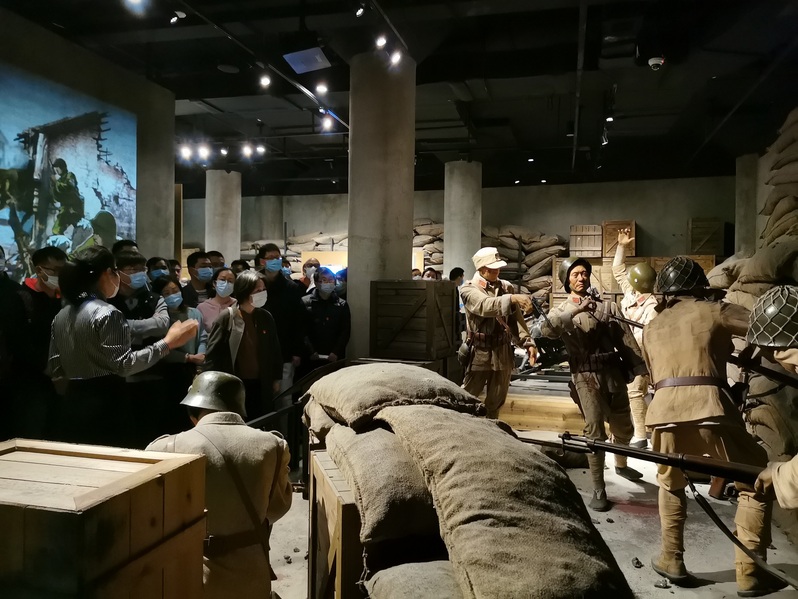 走近纪念馆,布满弹孔炮洞的四行西墙赫然矗立眼前,1800余平米的墙面上战火的痕迹,清晰地记录着那段可歌可泣的历史。历史与现实在这里交汇,曾经的苦难换来了今天的幸福生活,尚未进馆参观,心灵已经感受到了巨大的震撼。展厅内,一幅幅历史照片,一件件烈士遗物,一个个杀敌场景,一段段影像资料,生动真实地展现了淞沪会战的历史全貌以及抗日将士反抗日军侵略的壮烈情景。