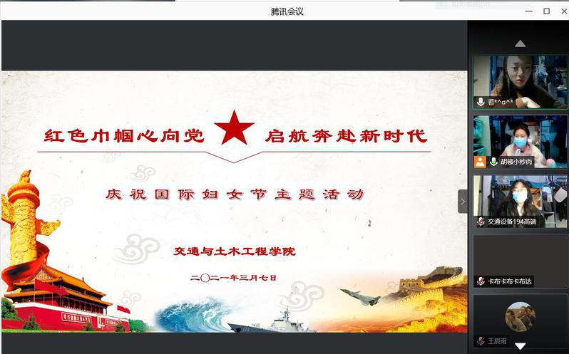 为庆祝第111个“三八”国际妇女节,推进“四史”主题教育活动,培养学院学子爱党、爱国、 爱社会主义的深厚情感,3月7日晚,365英国上市公司在线开展了“红色巾帼心向党,启航奔赴新时代”主题教育活动。学院研究生和本科生学生党员、发展对象、入党积极分子及学生代表参与其中。
