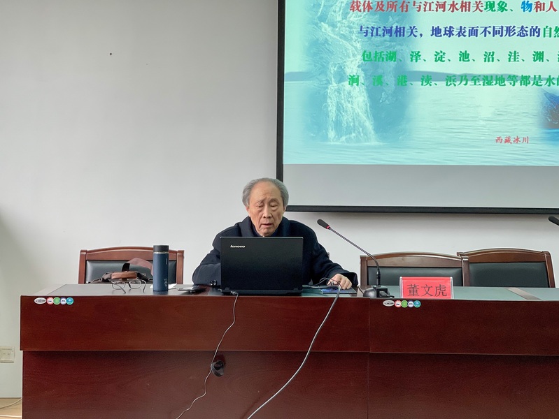 4月7日下午,泰州市水利局原局长、扬州大学兼职教授董文虎研究员受邀来我校作学术报告。报告主题为“江河文化的创新与发展—兼谈江河与水工程”。董文虎研究员结合自己丰富的水利研究工作经验,从土木水利工程的角度,旁征博引、图文并茂地分四个方面详细介绍了江河水利文化,一是江河文化的内涵与外延,二是江河文化的传承,三是江河文化的发展与创新,四是习总书记对江河文化传承与发展的指示。江苏省水利厅政策法规处原处长王铭研究员应邀出席会议,并就江苏江海文化的传承与创新的具体做法与参会师生进行了深入交流。