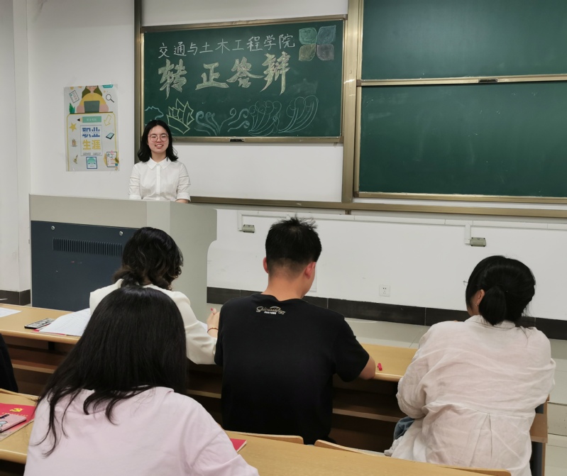 此次转正答辩会共有25名预备党员参与答辩,答辩小组由4名辅导员老师和5位学生正式党员组成。答辩会分为个人陈述和现场问答两个环节,25名预备党员依次围绕预备期内个人在思想、学习、工作和生活等方面取得的进步以及不足之处进行陈述,同时汇报了“我为群众办实事”党史学习教育活动进展情况,以及接下来如何在毕业设计、就业工作、毕业文明离校等方面发挥先锋模范作用。答辩小组结合每个人的情况,就党的基本理论知识、时事热点、党员的责任与使命等方面进行了提问,每名预备党员均给予了积极、深入、有针对性地回答,表现都很优秀,得到了答辩小组的一致肯定。