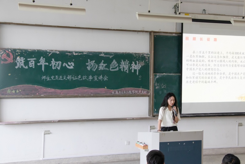 会上,辅导员王振以大庆油田为由头,讲述了以爱国精神、艰苦创业精神、求实精神、奉献精神为核心的大庆精神,激励学生要积极主动,勇担社会责任。学生党员许阳通过“十块银元心连心”的故事,告诫同学们要在奋斗中释放青春激情,以青春、奋斗为民族复兴铺路架桥;学生党员朱翊晗向大家讲述延安整风运动,启示学生要把延安精神作为团结奋进的强大动力;学生党员蒋函静讲述了红军长征的伟大历史,生动诠释了长征精神的时代内涵;学生党员单小轩讲述了“半条棉被”的故事,希望大家能继承与群众风雨同舟、命运与共对的赤子情怀。