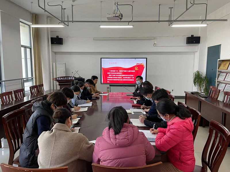 学院党委书记张莉莉主持会议并领学。她指出,党的十九届六中全会是在我们党成立一百周年的重要历史时刻,在党和人民胜利实现第一个百年奋斗目标、全面建成小康社会,正向着第二个百年奋斗目标迈进的重大历史关头召开的重要会议,在党的历史上具有重要的里程碑意义。她从六中全会的议程、重要意义和主要内容等方面对全会的主要内容进行了深入解读。她要求全体党员以学习贯彻党的十九届六中全会精神为契机,进一步提升党建工作水平,以高质量党建工作汇聚学院建设的磅薄力量,推动学院事业的高水平发展。