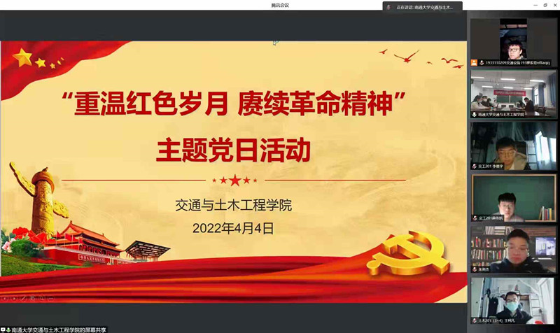活动中,研21交通专硕的冯寅飞同学讲述了董存瑞在解放战争中的英勇事迹,呼吁同学们在行动上勇于担当,在岗位上敬业乐业,争做一名优秀的新时代党员。交通设备191班季钰姣和工管191班顾佳怡与大家共同学习了朱德同志、赵一曼同志的崇高品德和精神风范,并深刻阐述了“朱德精神”“一曼精神”的内涵实质。土木工程181班卢天赐和交通设备181班杜若琳与大家一起重温了李大钊同志与吉鸿昌同志的革命故事,共同缅怀革命先烈,号召新时代青年党员不忘初心,牢记使命。同学们还在线观看了《疫情之下,党员先上》专题教育片。从抗战时期舍生忘死的革命先辈,到和平年代迎疫而上的“最美逆行者”,无不体现了共产党员的责任与担当。