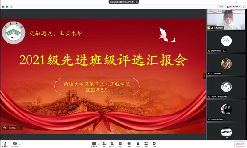 5月18日下午,365英国上市公司在线举行2021级先进班级线上评选汇报会。学院党委副书记、副院长陈妍出席会议。