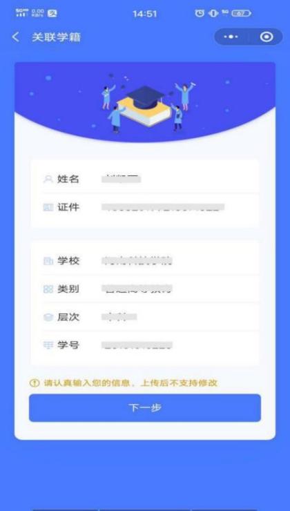 注:一个身份证件号码、一个微信号仅支持关联一个学籍。