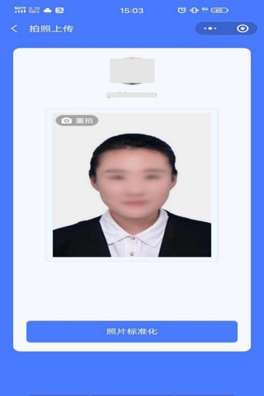 拍照后,点击 “照片标准化”,照片处理成功请点击“下一步”。
