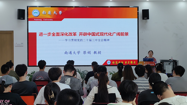 7月31日下午,学院举办“永远跟党走 奋进新征程”信仰公开课,邀请马克思主义学院蔡娟教授作题为《进一步全面深化改革 开辟中国式现代化广阔前景——学习贯彻党的二十届三中全会精神》专题讲座。