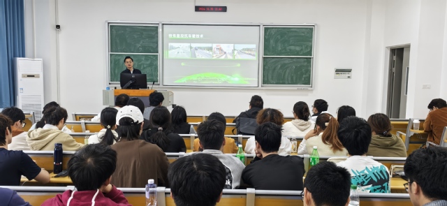周庆月教授系统地梳理了公路预防性养护的各项技术,深刻解读了与各项技术相关的材料、设备及施工技术,并通过具体的应用案例进行了生动的分析。报告涉及公路养护领域前沿内容,且极具工程实践价值,激发了学生深入探索未来公路养护技术的兴趣。讲座结束后,周庆月教授与学生进行了热烈地交流。