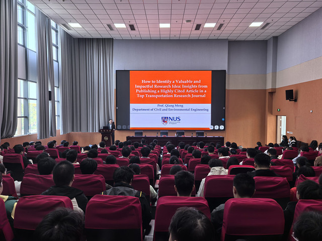 11月22日上午,新加坡工程院院士、新加坡国立大学孟强教授应邀到我院作题为"How to Identify a Valuable and Impactful Research Idea: Insights from Publishing a Highly Cited Article in a Top Transportation Research Journal "的学术报告。报告由副院长徐勋倩教授主持,学院百余名师生到场聆听。