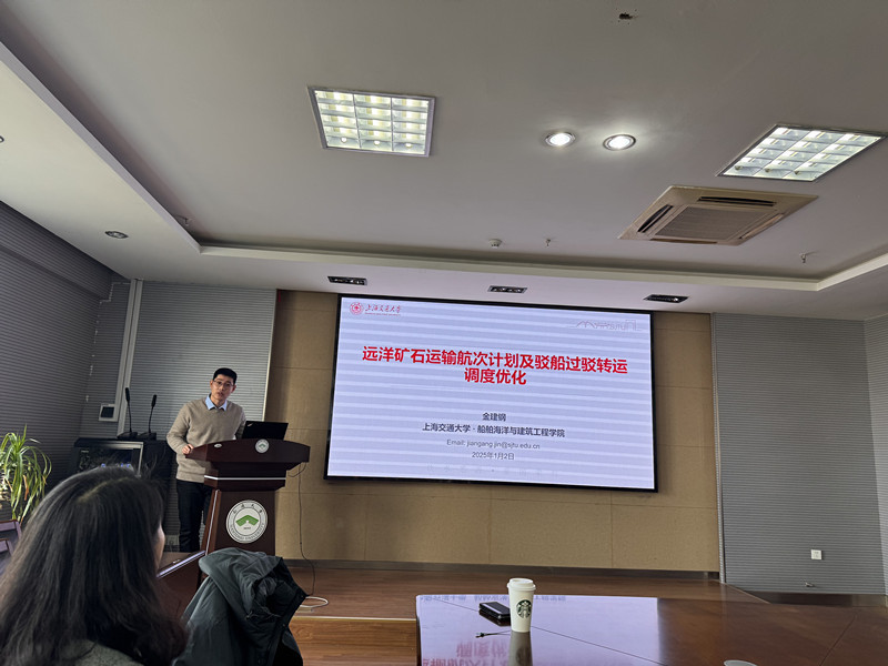 1月2日下午,上海交通大学金建钢教授应邀来访,为我校师生作了题为“远洋矿石运输航次计划及驳船过驳转运调度优化”的讲座。讲座由365英国上市公司在线副院长徐勋倩教授主持,相关专业教师、研究生参加了讲座。